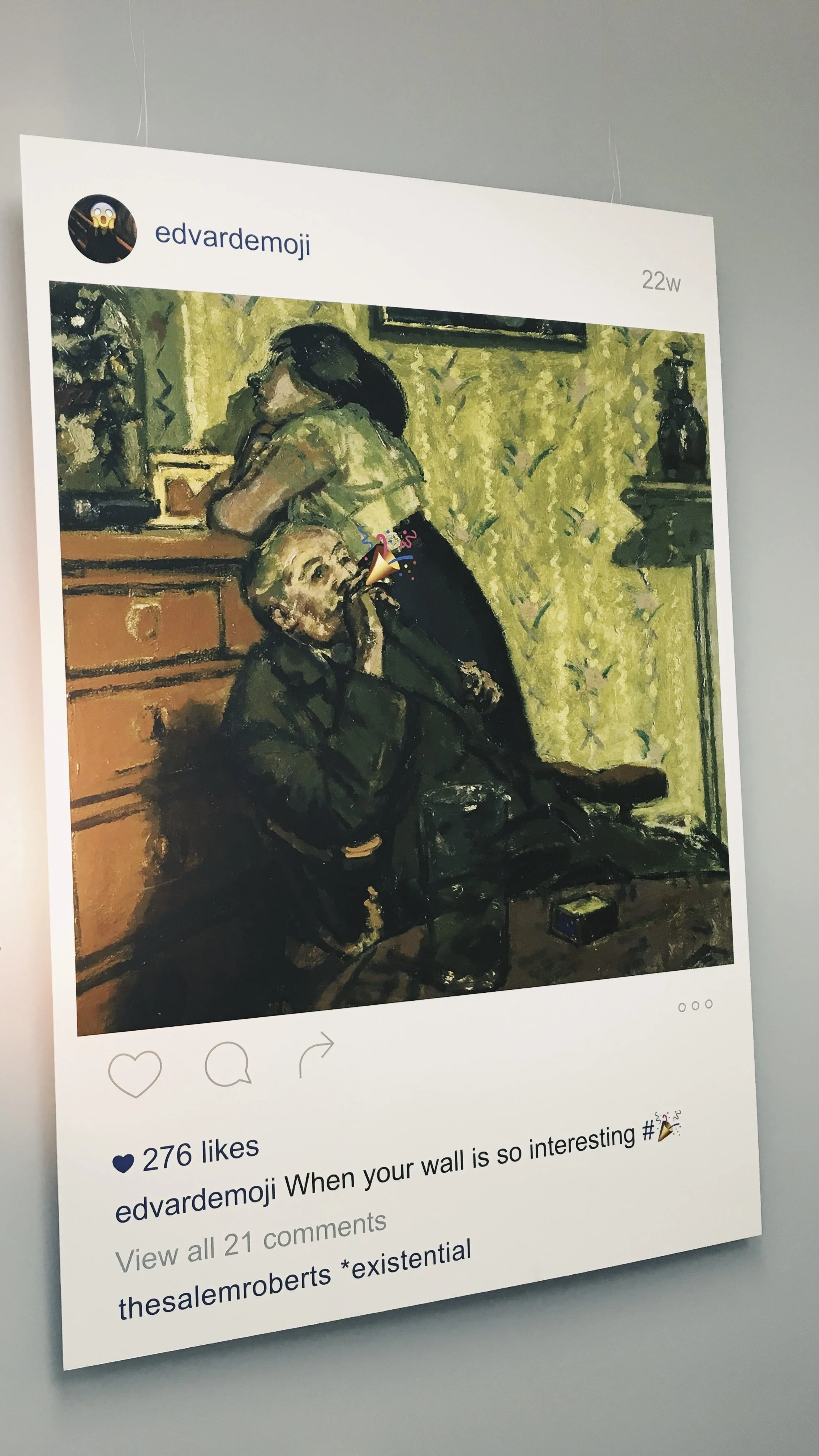 Edvard Emoji was an ongoing digital and social media art project, bringing forgotten works of art back to life by adding an emoji.